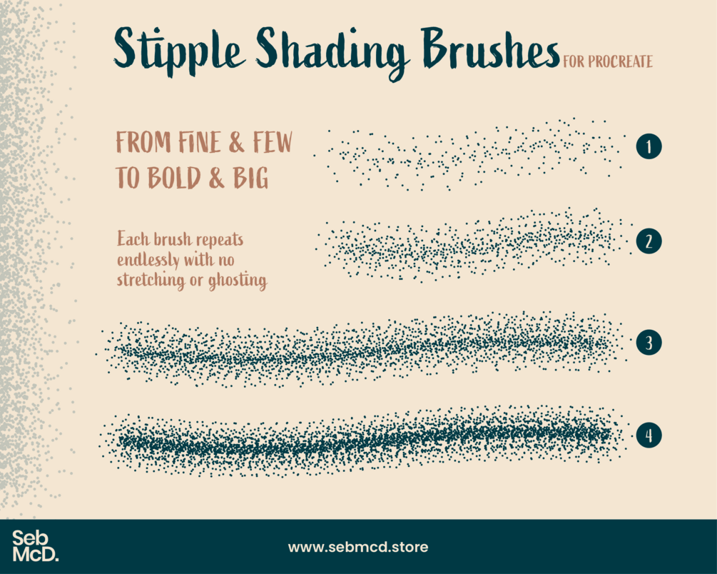 4 Procreate Brushes, 4 Unique Brushes - Stipple Shading Brushes